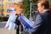 По традиции, в этот день прошла торжественная линейка, посвященная Дню знаний и началу нового учебного года. Молодое пополнение приветствовали руководители МАИ и именитые выпускники разных лет. Вёл мероприятие проректор по воспитательной работе МАИ Николай Николаевич Юров.