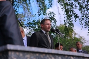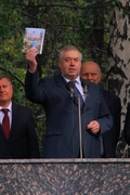 Потом выступил выпускник МАИ 1963 года, научный руководитель Центрального Института Авиационного Моторостроения им. П. И. Баранова Владимир Алексеевич Скибин. Подчеркнув, что 1 сентября во все времена символизировало начало нового этапа в жизни каждого первокурсника, начало студенческой жизни, Владимир Алексеевич рассказал о том, что несмотря на кризисные явления в мире, авиация развивается. А выпускники МАИ всегда были и остаются востребованными на предприятиях авиационной промышленности. На примере своего предприятия Владимир Алексеевич рассказал, что и с зарплатами дело обстоит совсем неплохо.