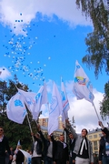 Завершался митинг прекрасным выступлением маёвского хора, исполнившего студенческий гимн Гаудеамус. Затем состоялась традиционная торжественная передача пропеллера — от старшекурсников первокурсникам, как символа эстафеты поколений, а в небо взлетели белые и голубые шарики.